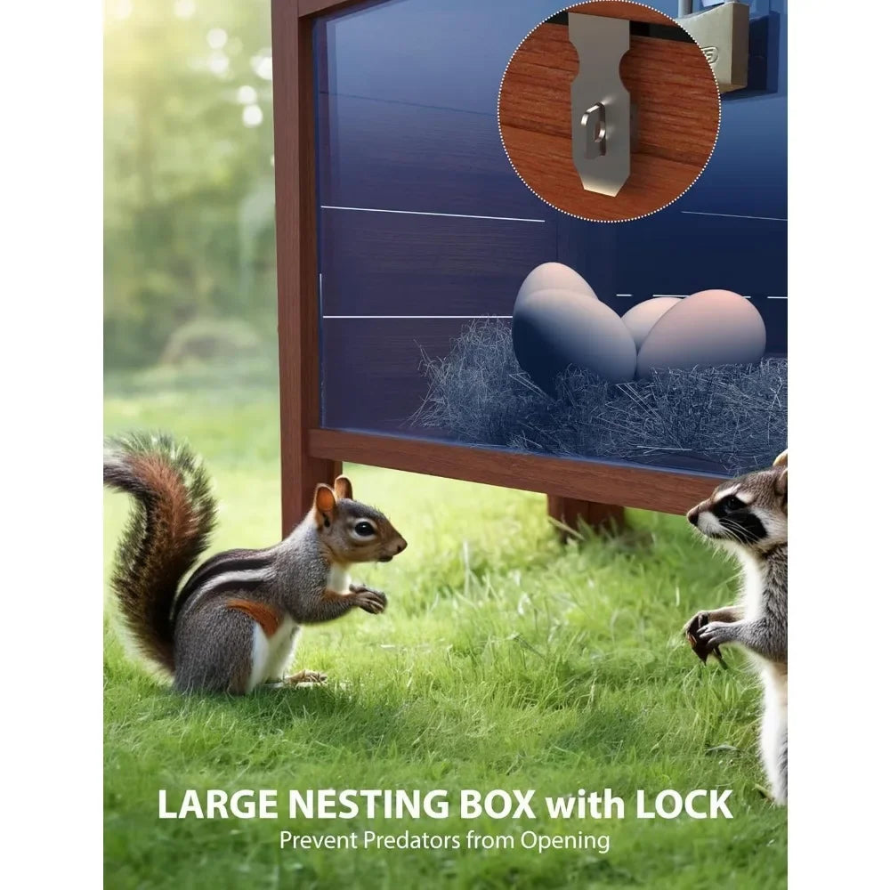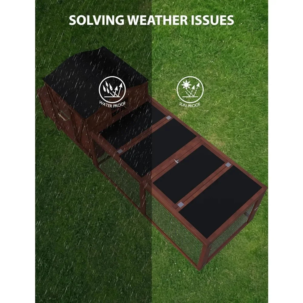 Hen House Poultry Pet Hutch Run with Waterproof Roof, Ramp, Nesting Box, Wire Fence, Backyard Poultry Cage